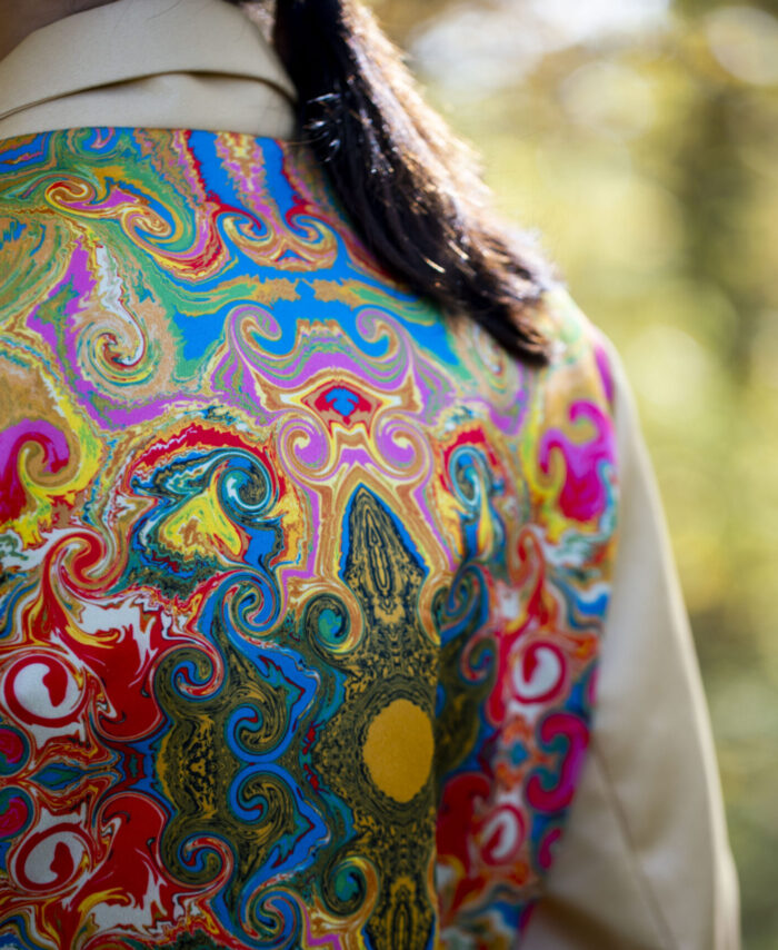 Exclusively handsewn silk kimono MOMO, with unique hand drawn pattern, for those who want to outstand, shine and sparkle, who want to add colors and joy to their and their loved one’s life.  To enjoy summer with soft silk, airy, smooth and gorgeous look.