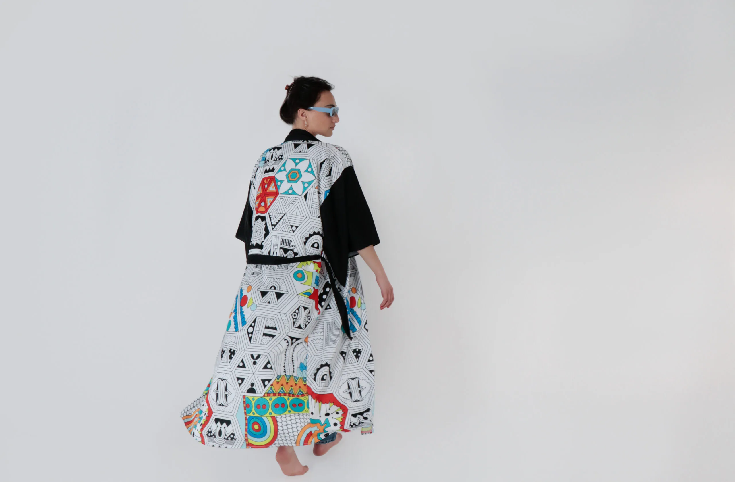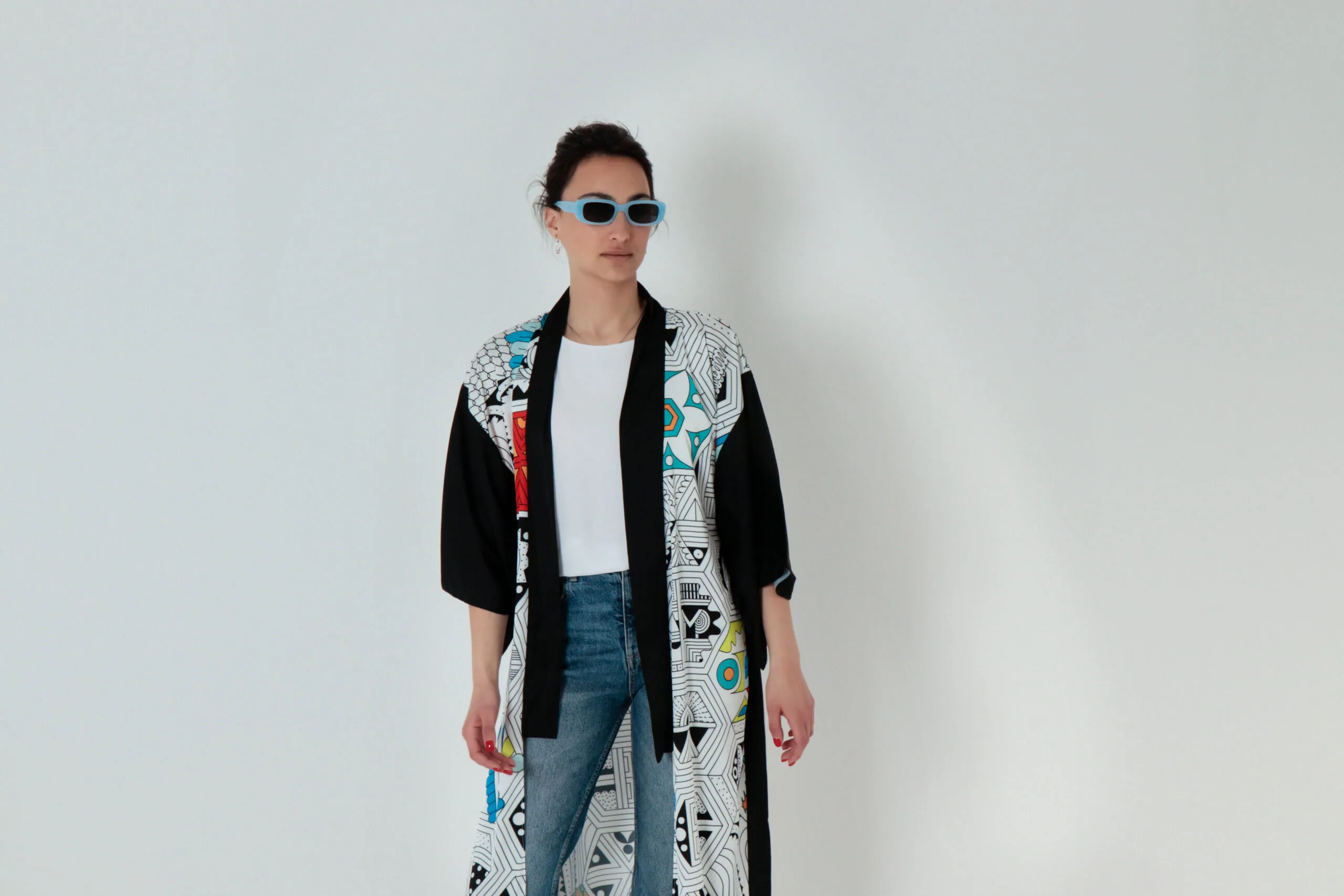 Exclusively handsewn silk kimono MOMO, with unique hand drawn pattern, for those who want to outstand, shine and sparkle, who want to add colors and joy to their and their loved one’s life.  To enjoy summer with soft silk, airy, smooth and gorgeous look.