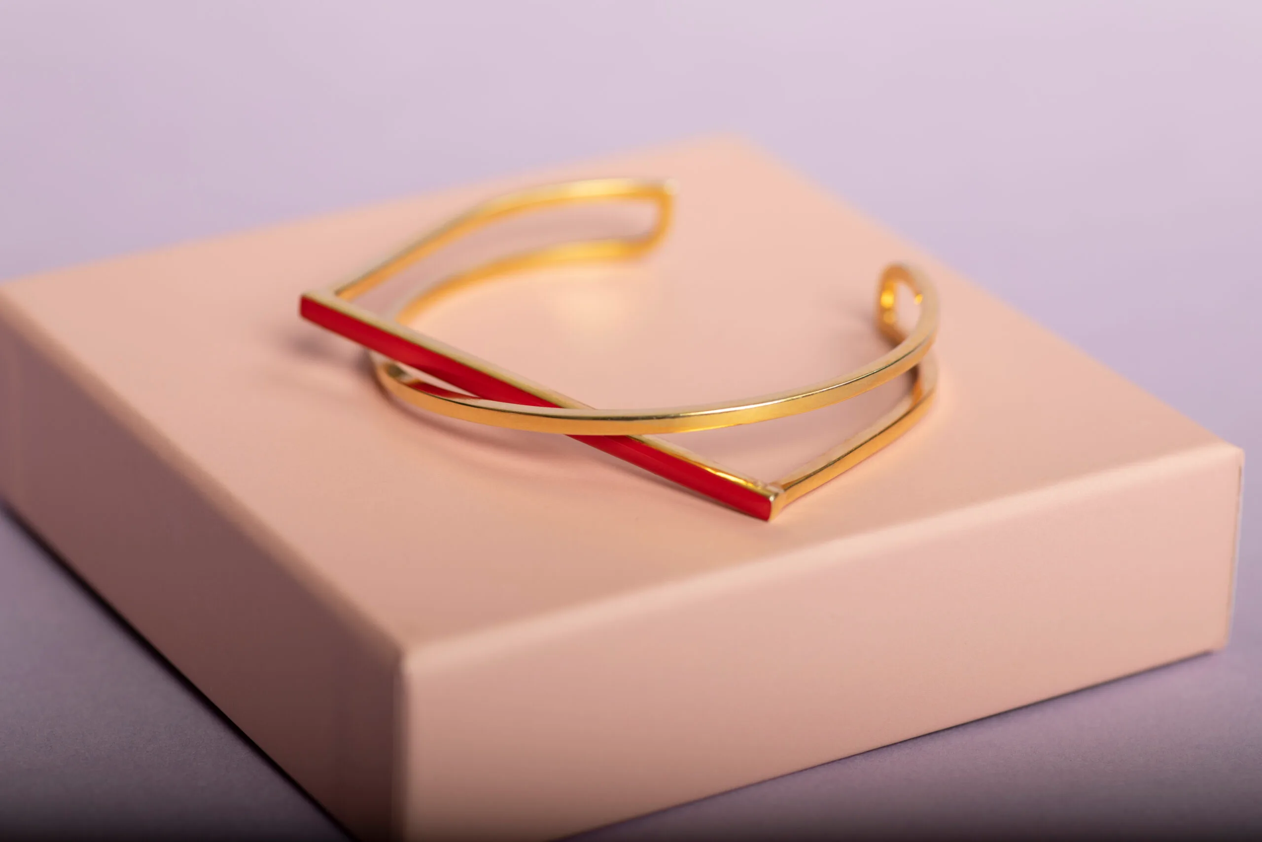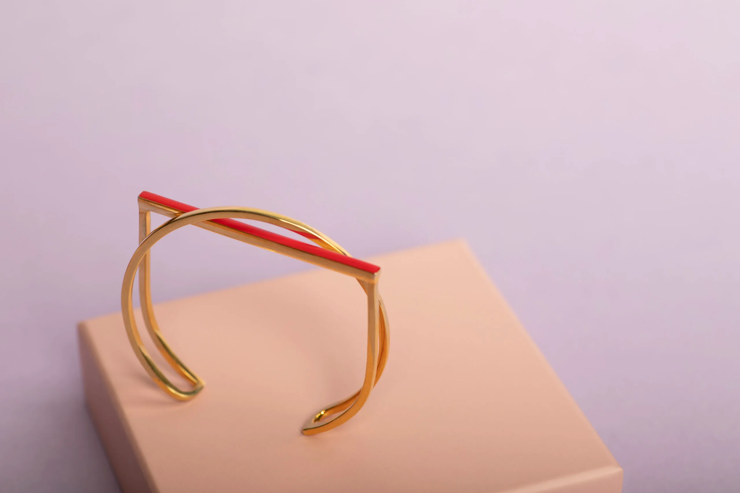 ვერცხლის ხელნაკეთი სამაჯური, მოოქროვილი, წითელი მინანქრით.