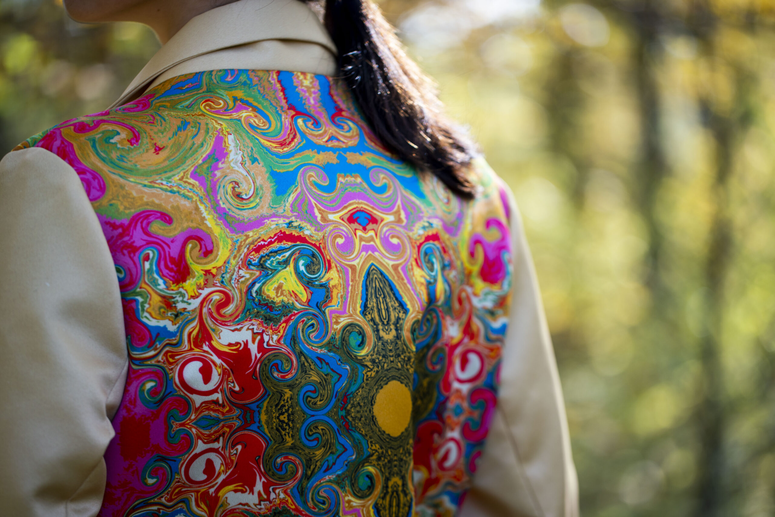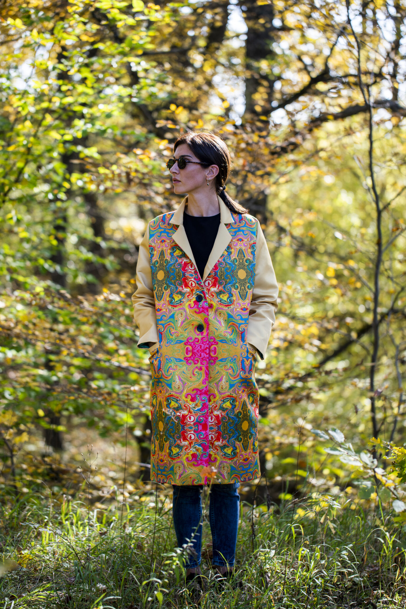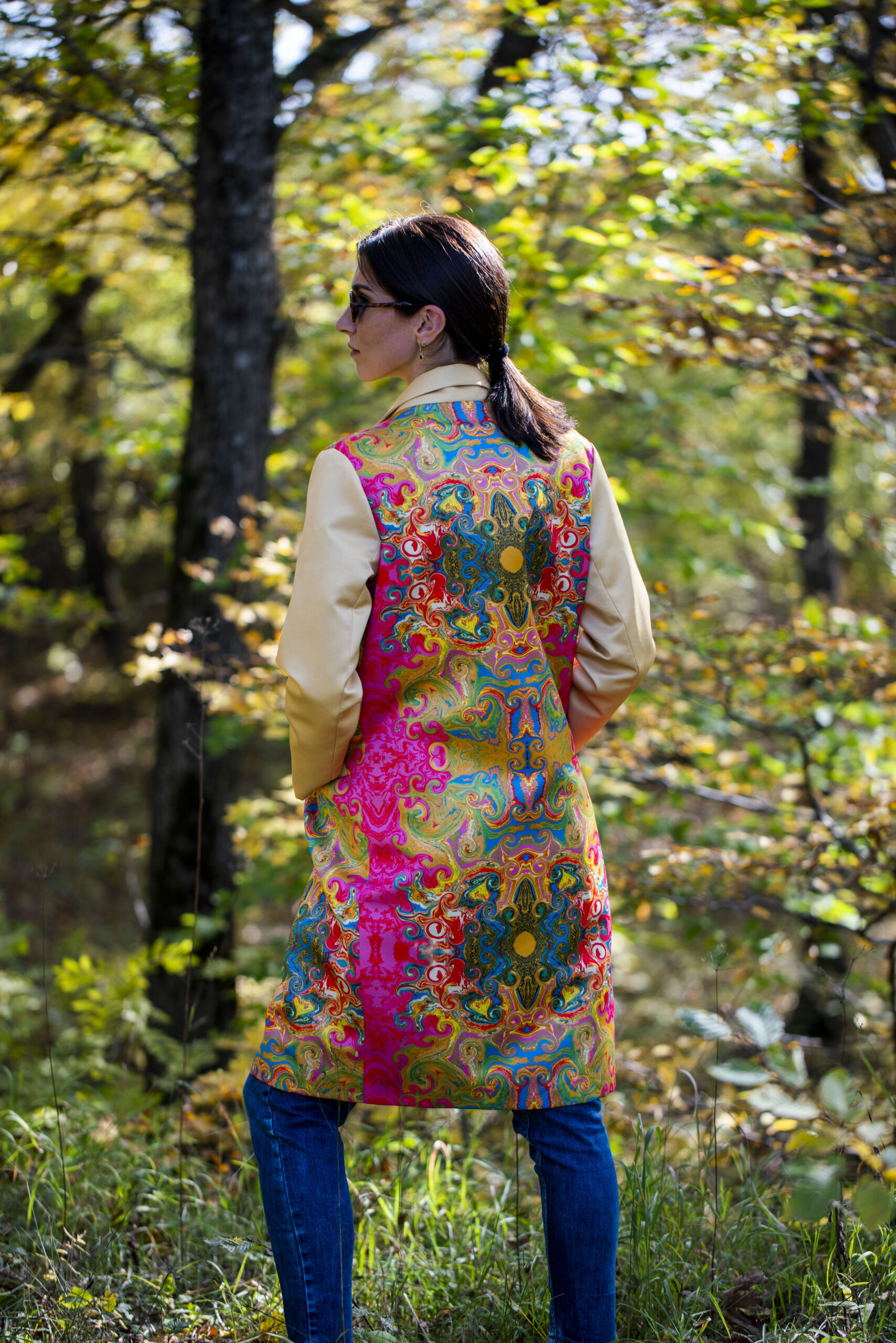 Handmade coat with unique print design makes you feel exclusive and outstanding by wearing the magic world. Add colors to your daily life with O’DELLA.