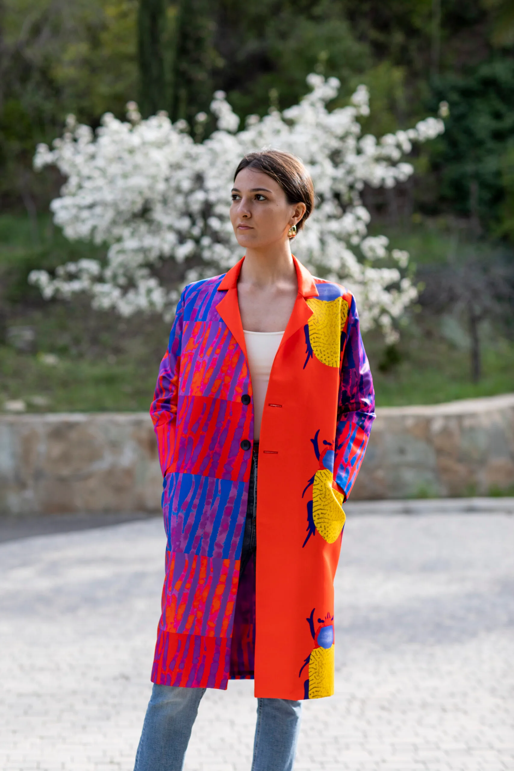 Handmade coat with unique print design makes you feel exclusive and outstanding by wearing the magic world. Add colors to your daily life with O’DELLA.