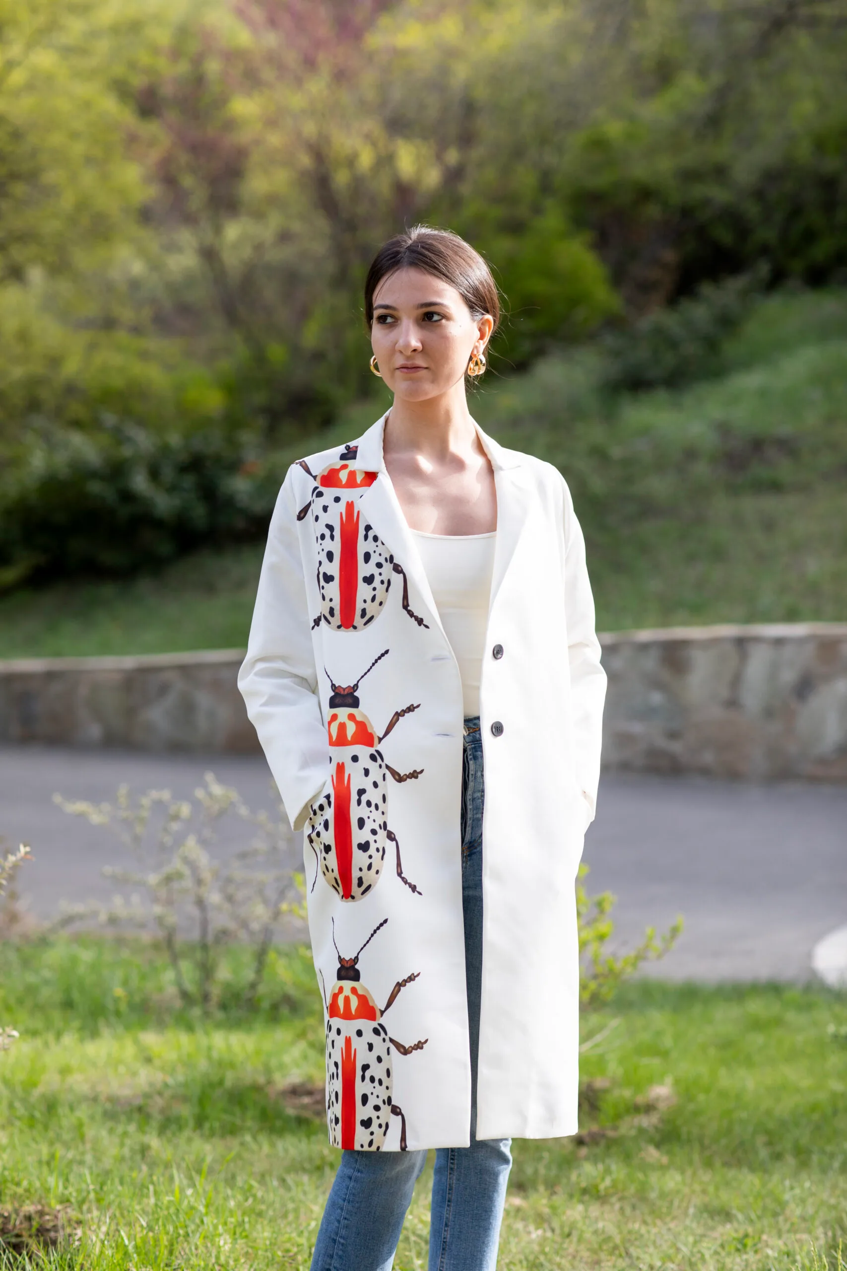 Handmade coat with unique print design makes you feel exclusive and outstanding by wearing the magic world. Add colors to your daily life with O’DELLA.
